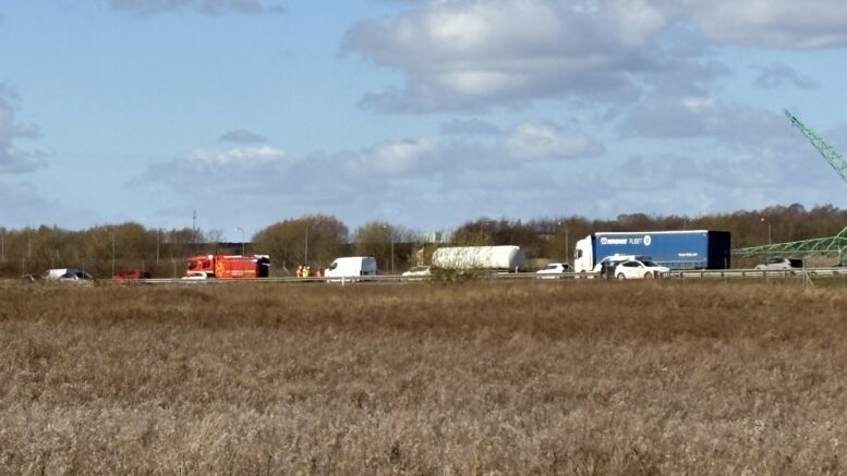 Kæmpe trafikproblemer: Lastbil i brand