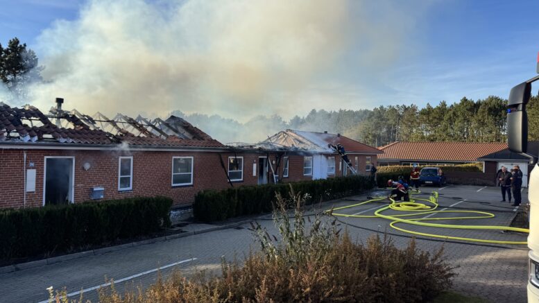 Rækkehus står i flammer: Taget er fuldstændig brændt væk