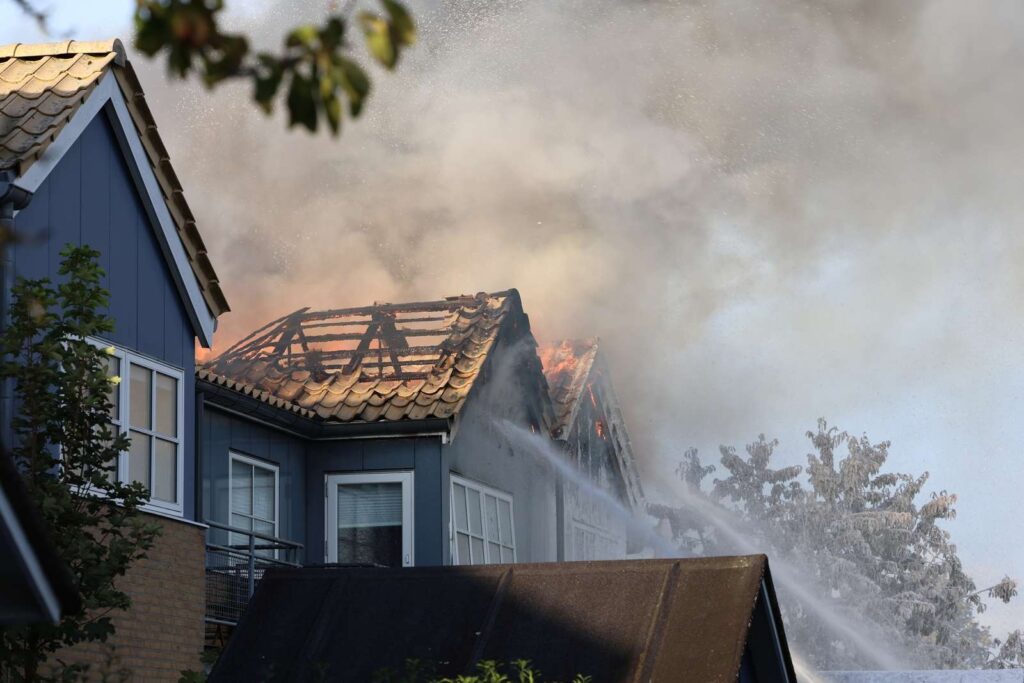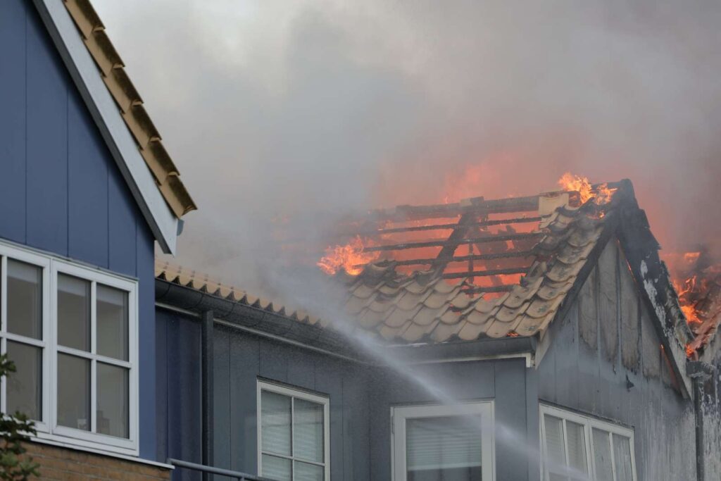 Ifølge Presse-fotos.dks udsendte er flere lejligheder allerede hårdt ramt, mens ilden lige nu spreder sig langs taget.