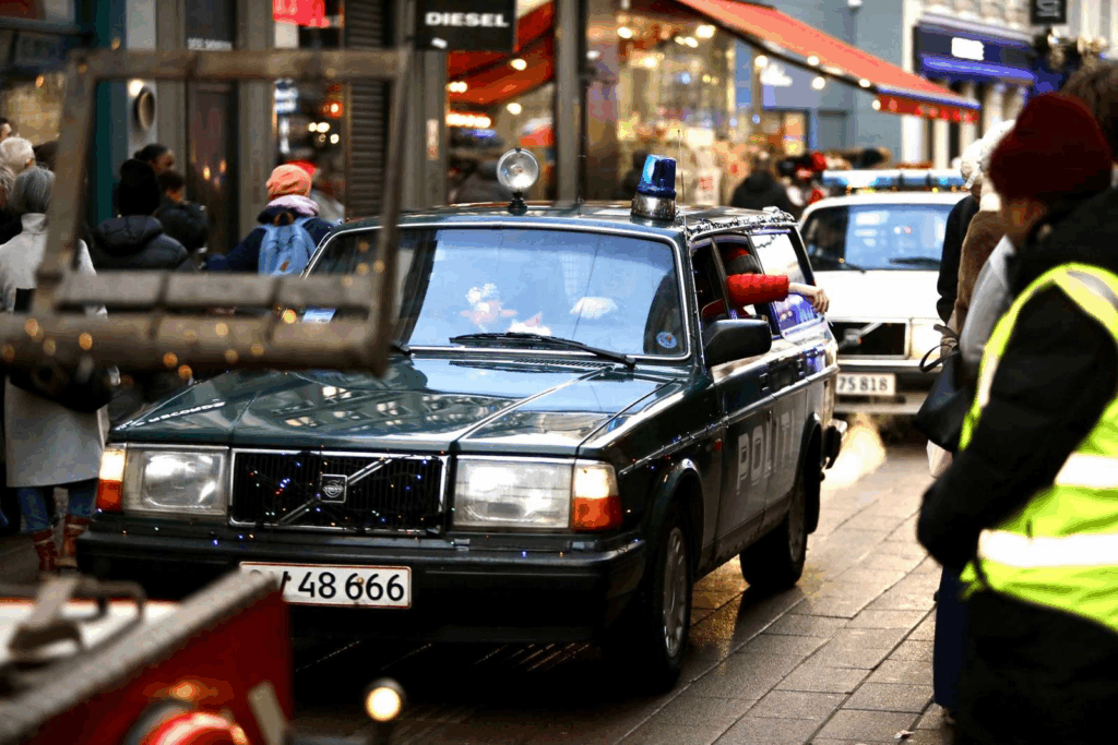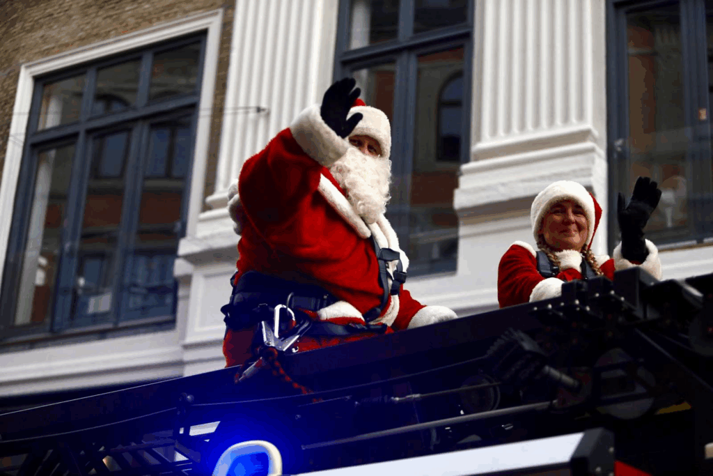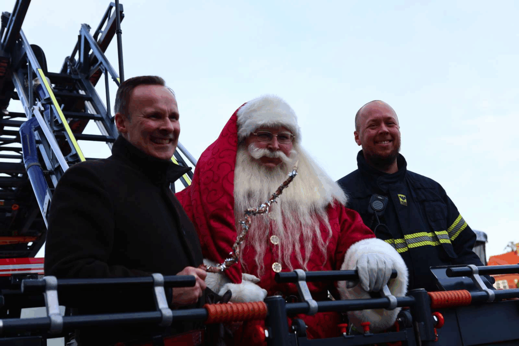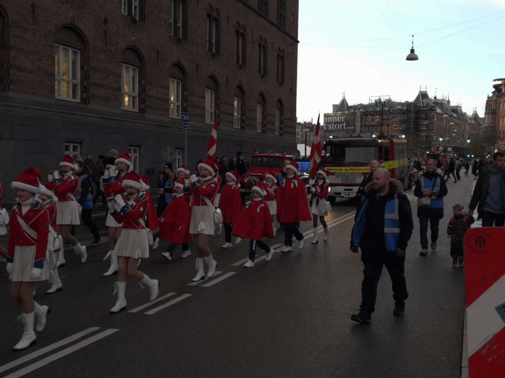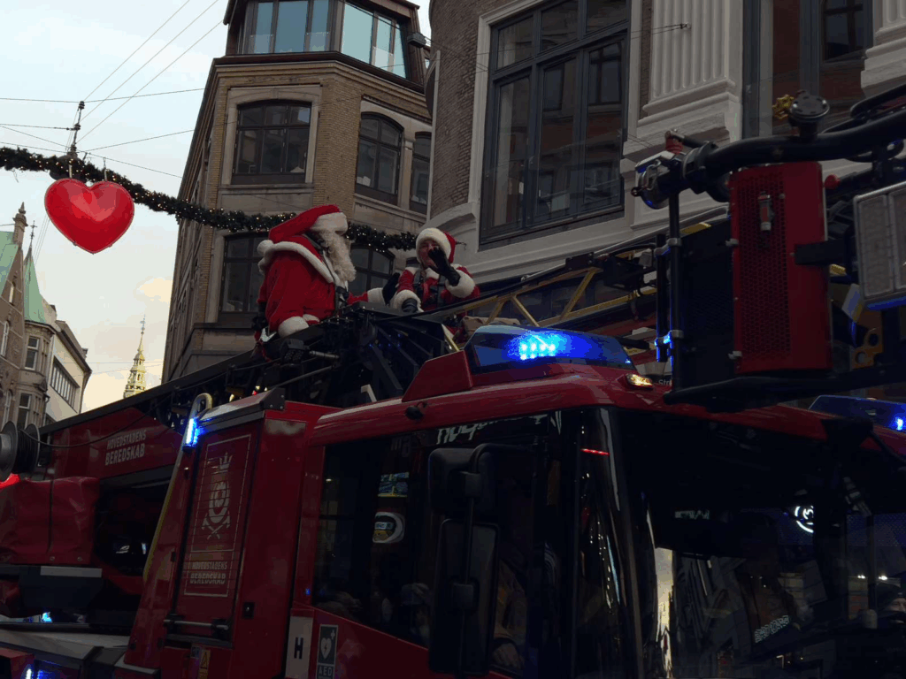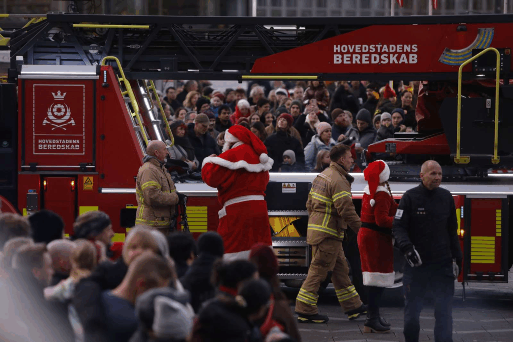 Julemanden ankom til Rådhuspladsen efter et optog fra Nyhavn, hvor han blev akkompagneret af Hovedstadens Beredskab, der stillede en række brandkøretøjer til rådighed.
