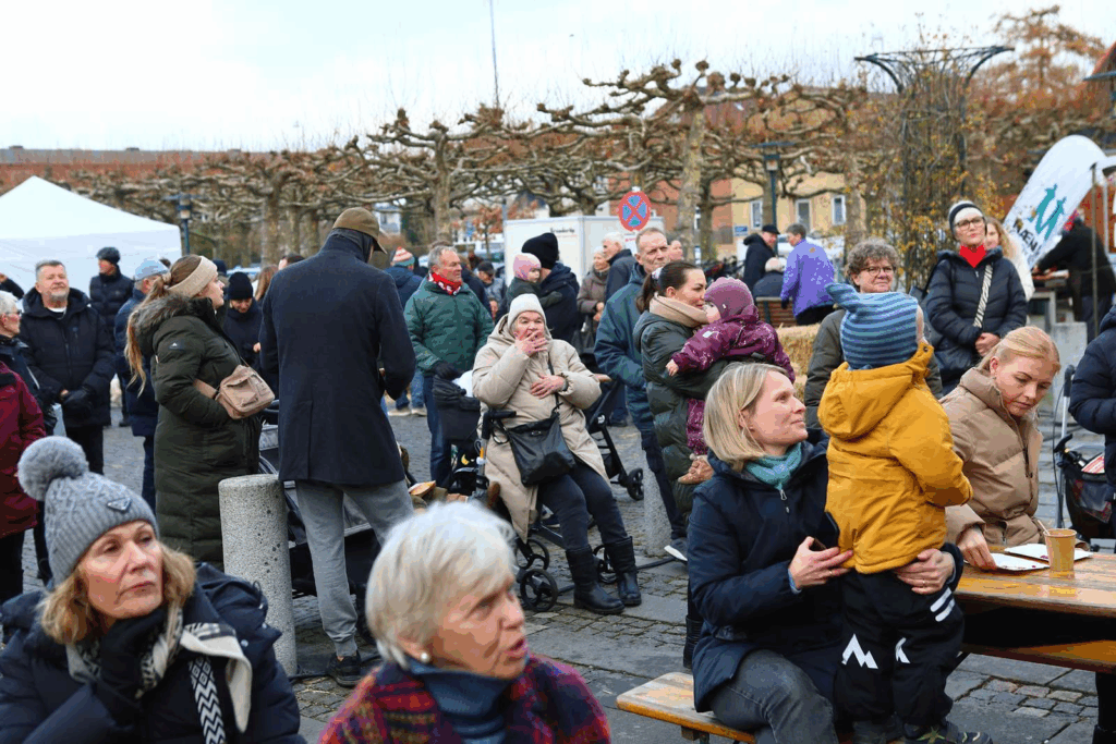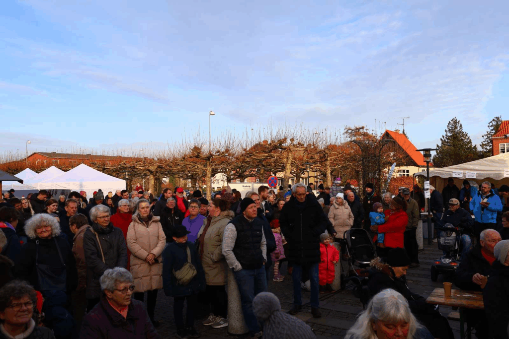 Træet blev igen i år – som der er tradition for – hentet i Gribskov og tændt foran en stor folkemængde, der havde begivet sig ud i det friske vejr på denne første søndag i advent.
