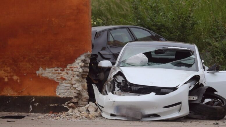 ‘Det lød som en eksplosion’: Tesla hamrer ind i bank