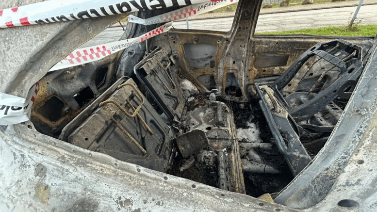Bil helt udbrændt ved Superliga-stadion: ‘Der ligger en sten på bagsædet’