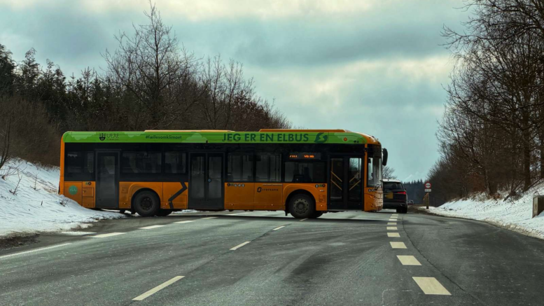 Elbus holder på tværs af større vej: Har varet i over en time