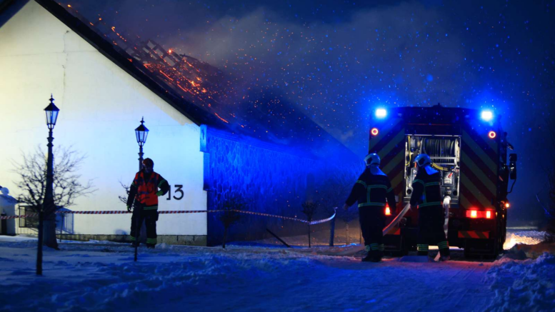Stor udrykning: Brand i gård