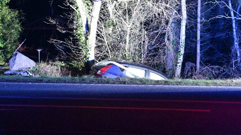 Alvorlig ulykke: En bil ligger i grøften, en anden er smadret