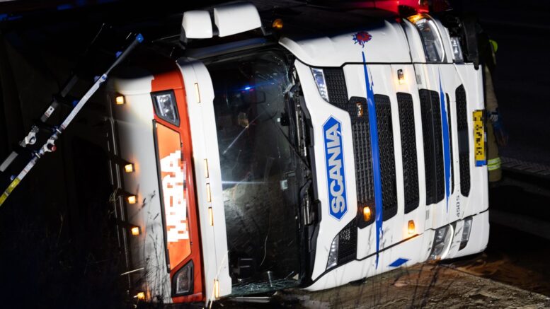 Solouheld på de glatte veje: Lastbil væltet