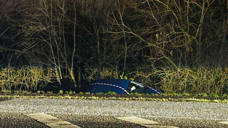 Voldsomt færdselsuheld: Bil ligger dybt nede i grøften