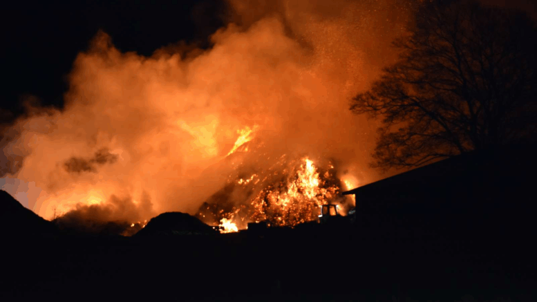 Voldsom brand raserer på 18. time: Kan ses fra motorvejen