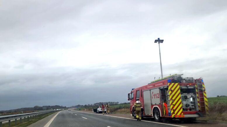 Bil i brand på motorvej