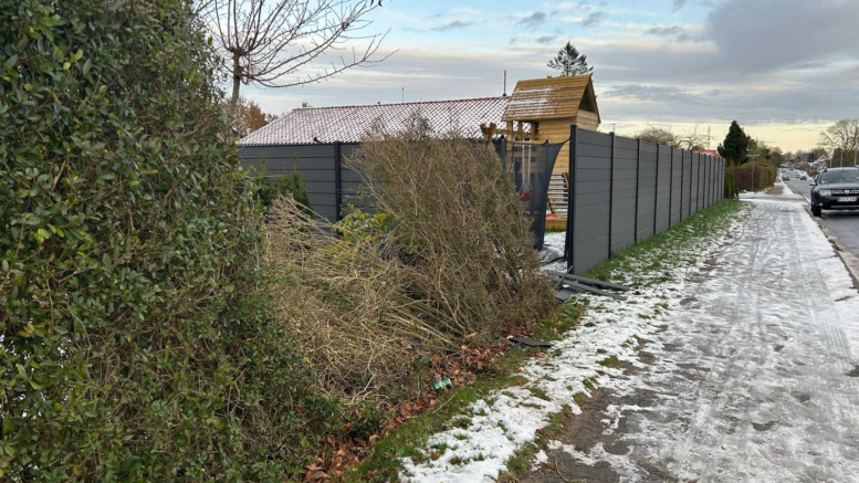 Personbil pløjer hæk og ender i privat have