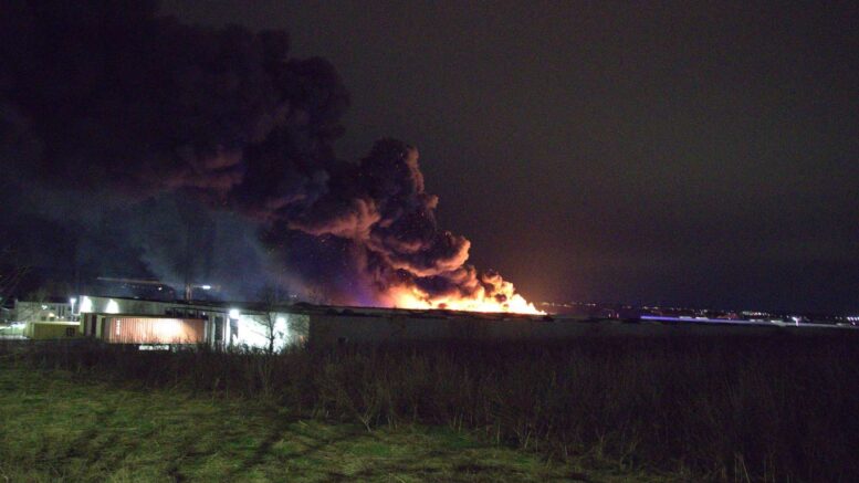 Bygning i flammer: Politiet advarer – ‘Meget giftig røg, ring 112 ved ubehag og sviende hud eller øjne’