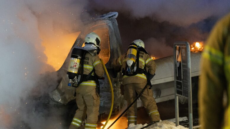 Vilde billeder: Brandvæsnet kæmper mod stor bilbrand