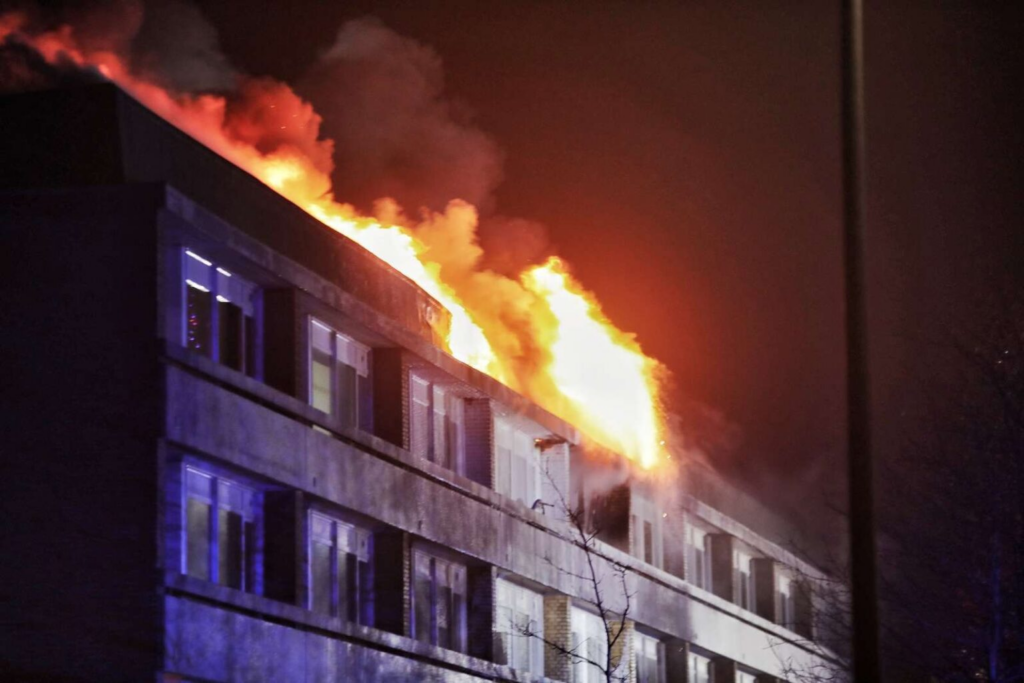 Det var nytårsaften, at politiet og beredskabet blev kaldt ud til branden i etageejendommen.