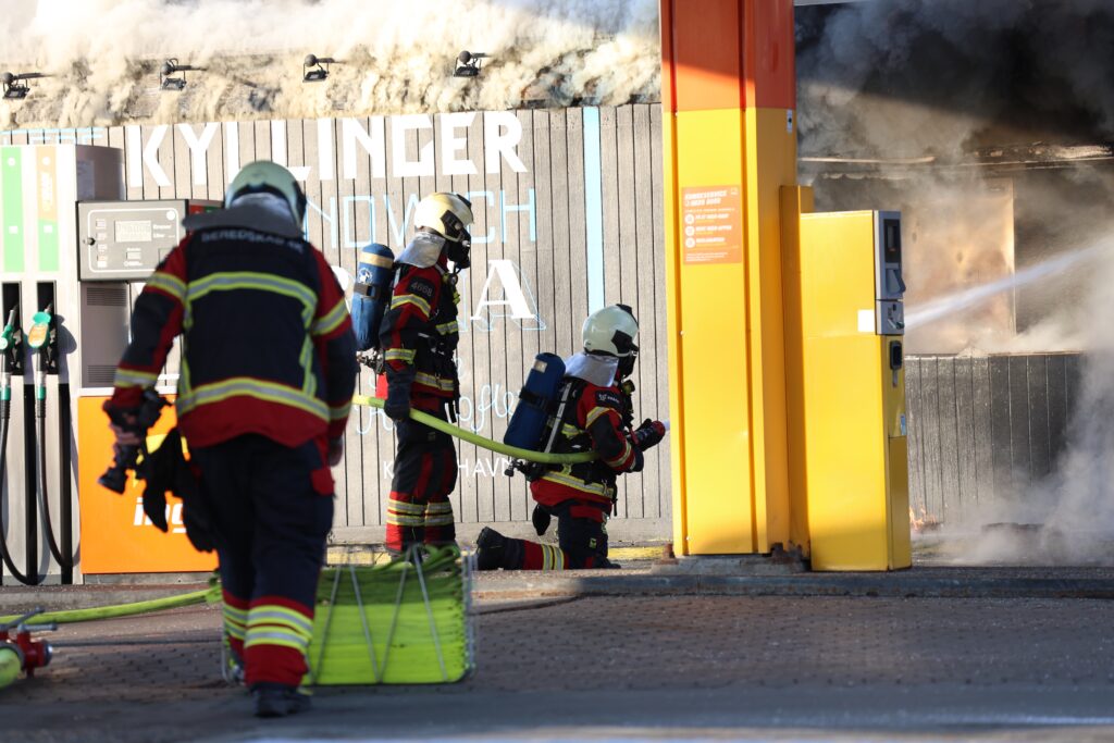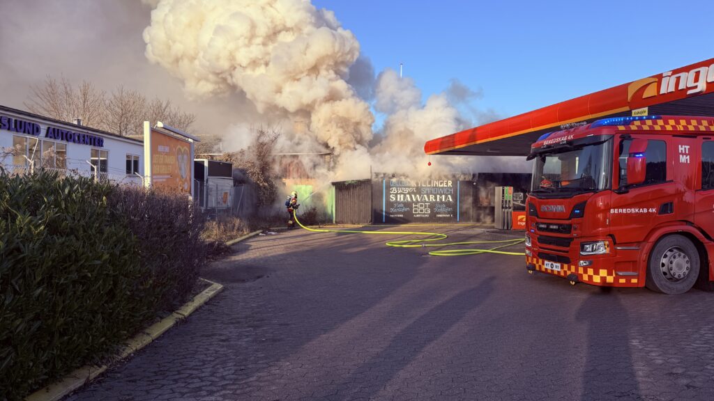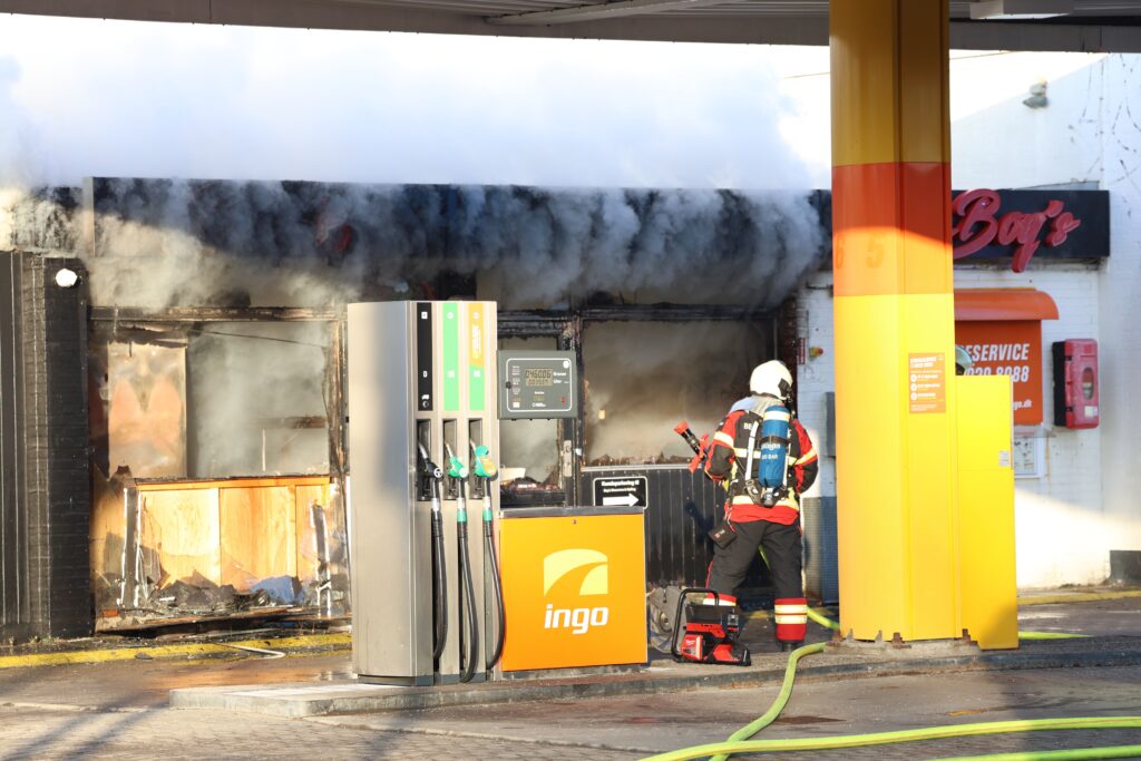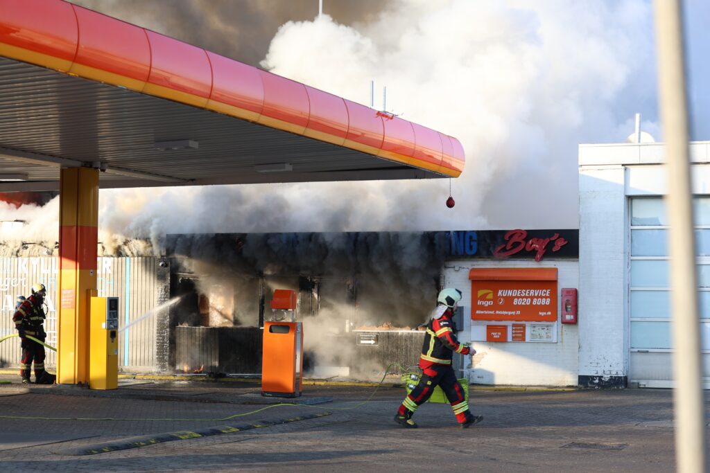 En kæmpe brand er brudt i en tankstation i Albertslund. Brandvæsen er til stede og i gang med slukningsarbejdet.