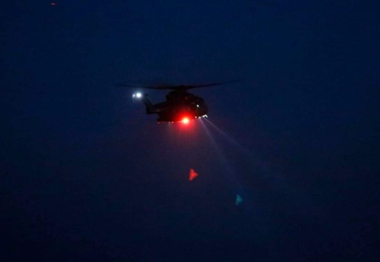 Politiet landede med en helikopter på skibet, mens andre styrker kravlede om bord fra en mindre båd under aktionen.