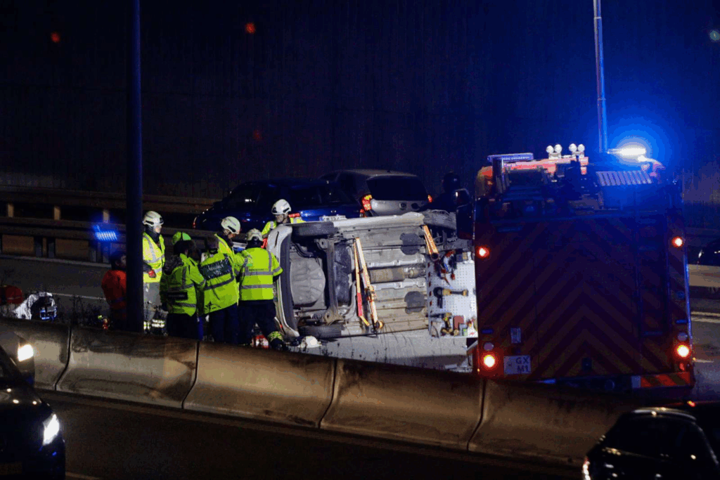 Torsdag eftermiddag er politi og redning hastet ud til en motorvej, hvor en person er fastklemt efter et uheld. På stedet ligger køretøjet på siden midt på vejbanen, og der er op mod en times forlænget rejsetid.