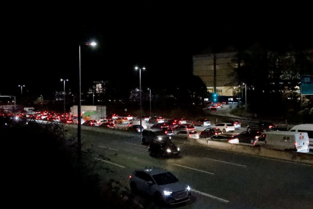 Ifølge direktoratet er der lige nu mellem 30 og 60 minutters forlænget rejsetid på motorvejen.