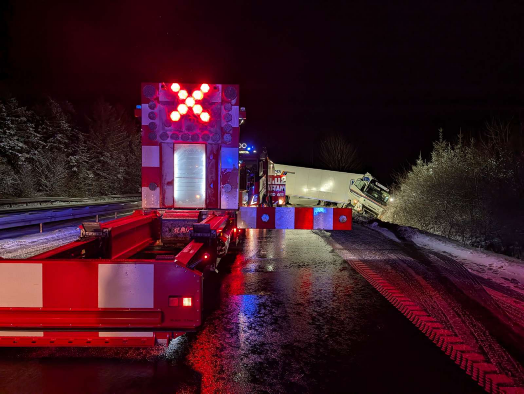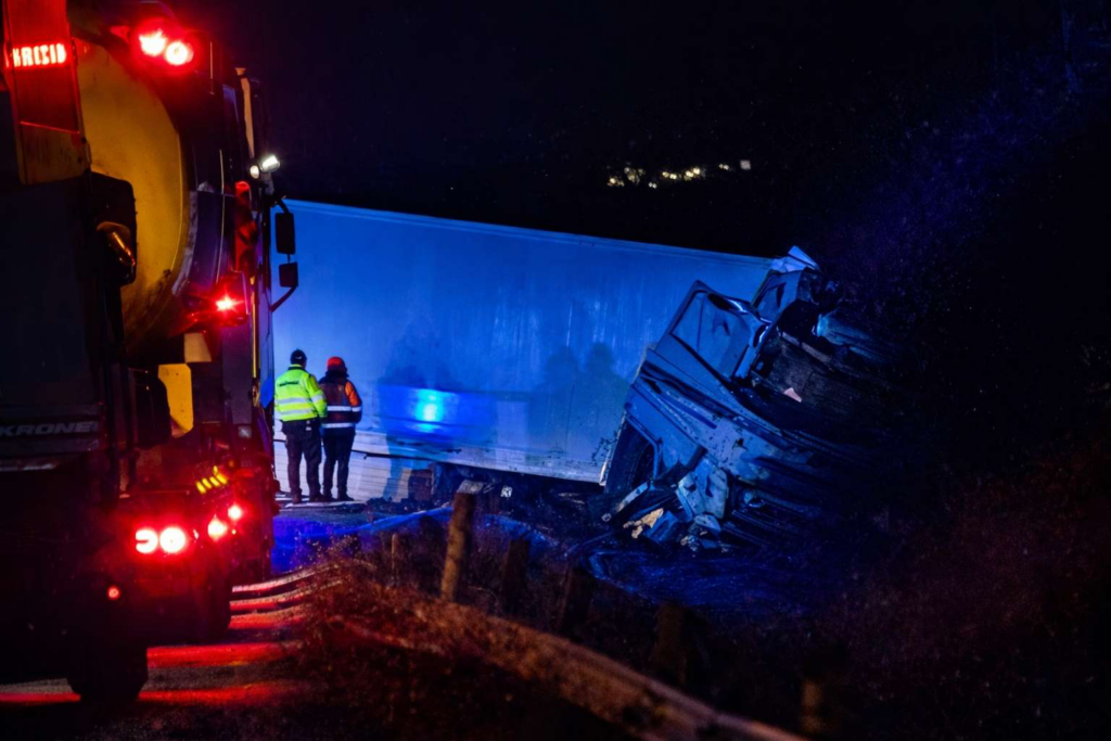 – Da vi var på vej ud til færdselsuheldet, og da patruljen kørte nordpå, kunne den se, at en lastbil var kørt i grøften længere sydpå. Det er det færdselsuheld, vi er i gang med nu, siger Jan Lolk.