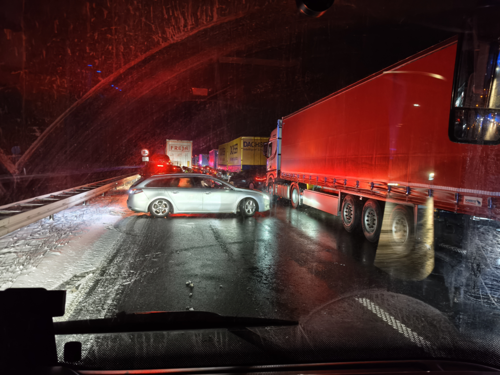 To voldsomme uheld på samme strækning har spærret motorvejen. Bilister opfordres til at holde afstand og køre forsigtigt.