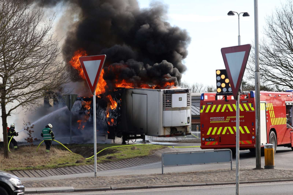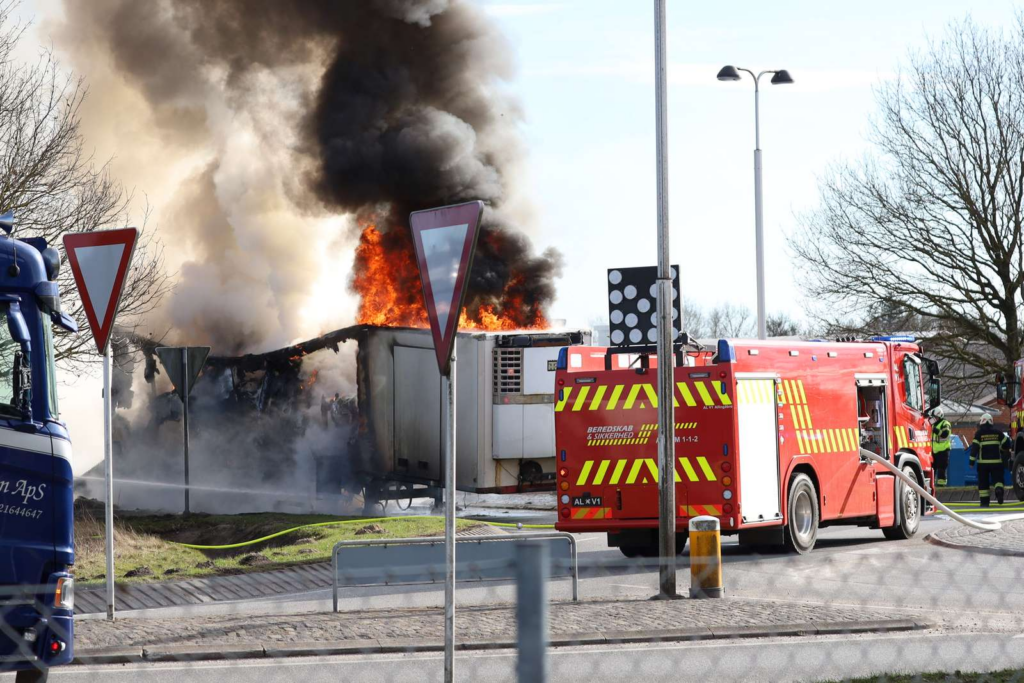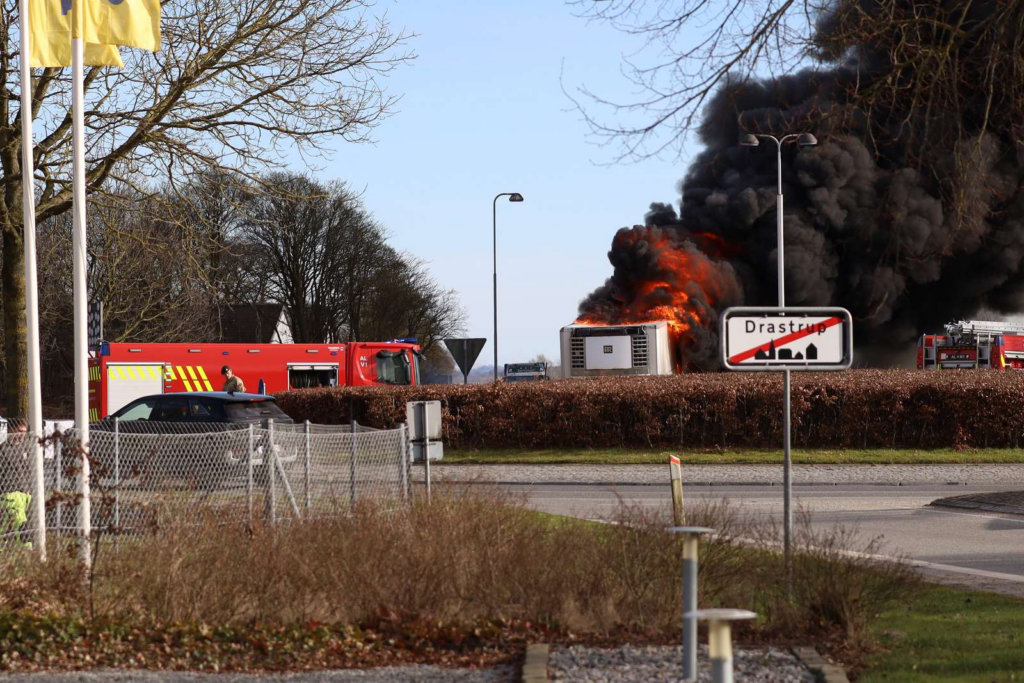 Det er endnu uklart, hvad der har forårsaget branden i lastbilen, og om der er personer kommet til skade i forbindelse med hændelsen.