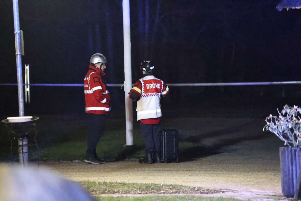 Politiet er massivt til stede sammen med dronefolk og dykkere.