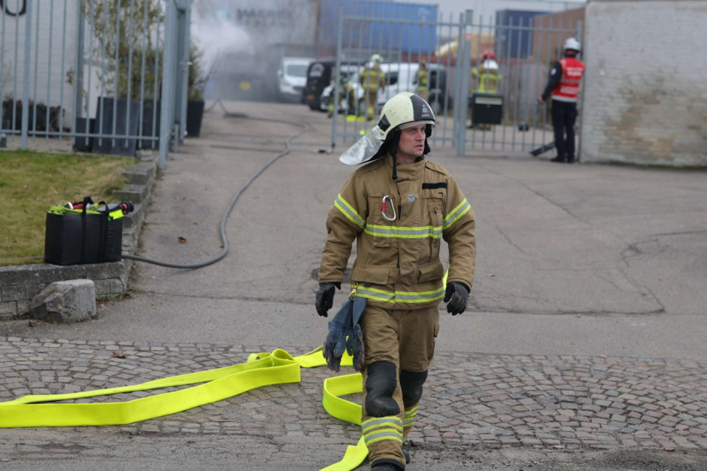 ’Vi fik anmeldelsen klokken 16 sammen med brand,’ forklarer vagtchefen til Presse-fotos.dk.