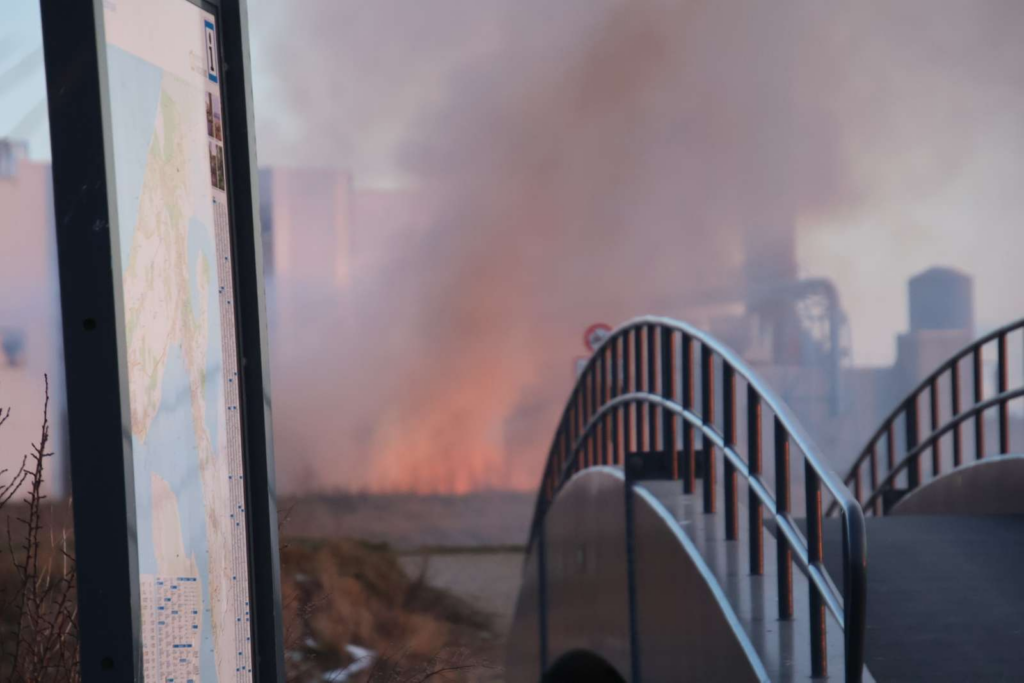Ifølge de første meldinger står kraftige flammer op fra affaldet, og en stor, tæt røgfane kan ses over området.