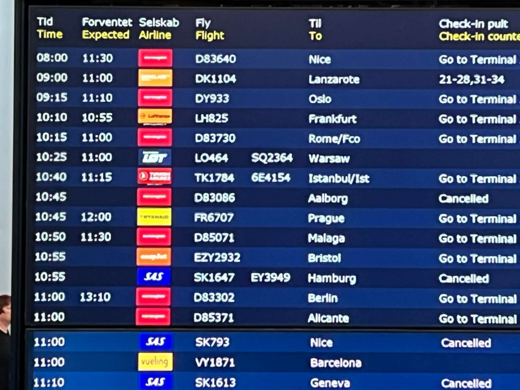 Snevejret har nemlig ramt lufttrafikken hårdt, netop som ferietrafikken topper. Flere fly er allerede aflyst, og situationen forventes at forværres i løbet af dagen.