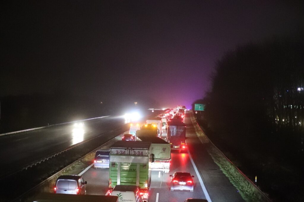 Ifølge Vejdirektoratet er venstre spor spærret, og der kan forekomme op til en halv times kø på stedet.