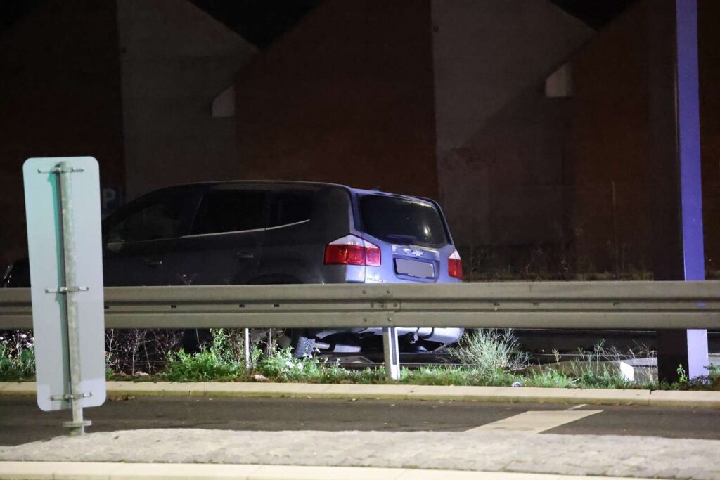 Sent lørdag aften endte en bilist på letbaneskinnerne ved Mileparken i Herlev.