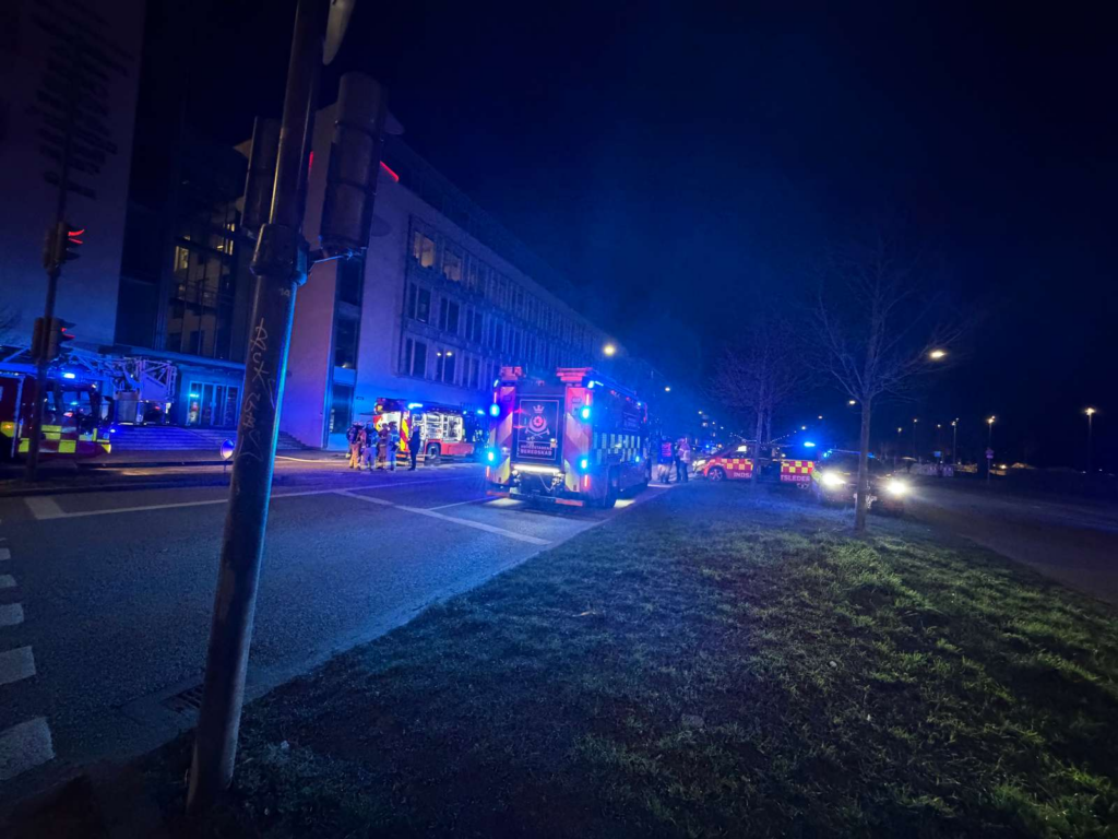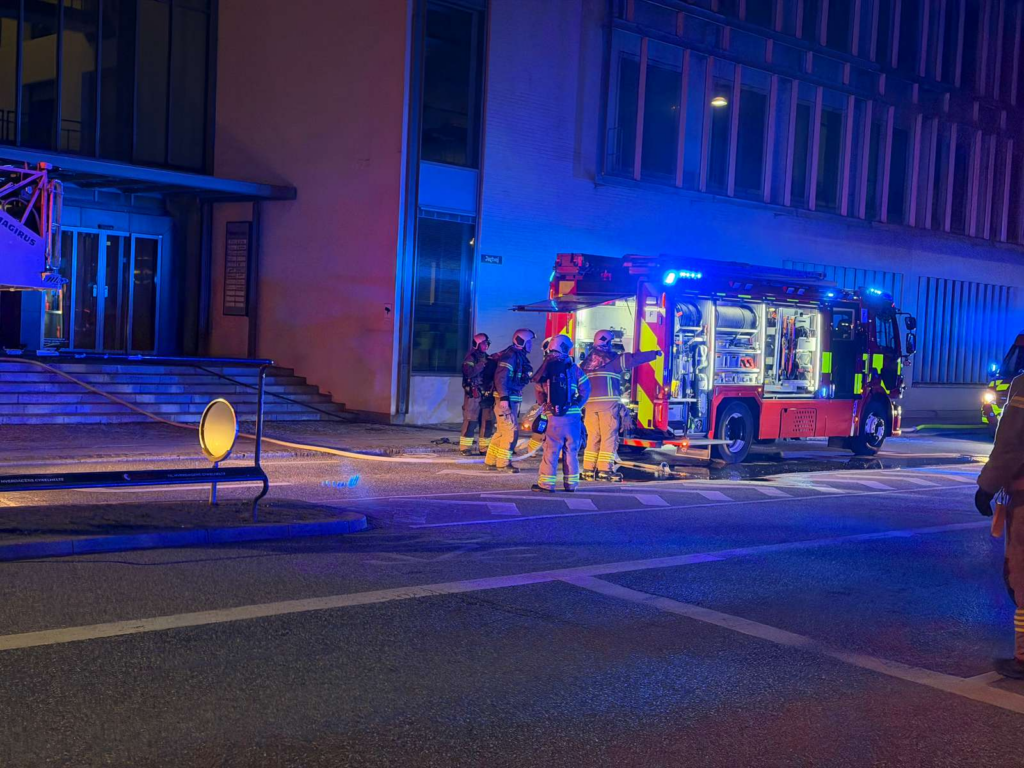 På billeder fra stedet ses det, at en brandslange er blevet kørt ind i en bygning, men der er ikke noget, som indikerer, at en større brand skal være sket.
