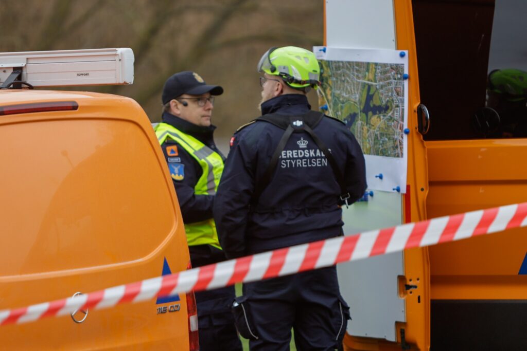 Beredskabsstyrelsen og politiet er til stede, hvor en omfattende eftersøgning er i gang for at finde en forsvundet mand – se flere billeder nederst i artiklen