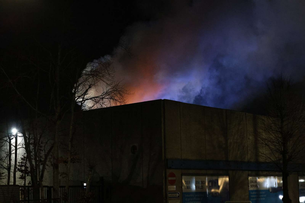 Kraftig brand på renovationsstation med stor risiko forbundet.