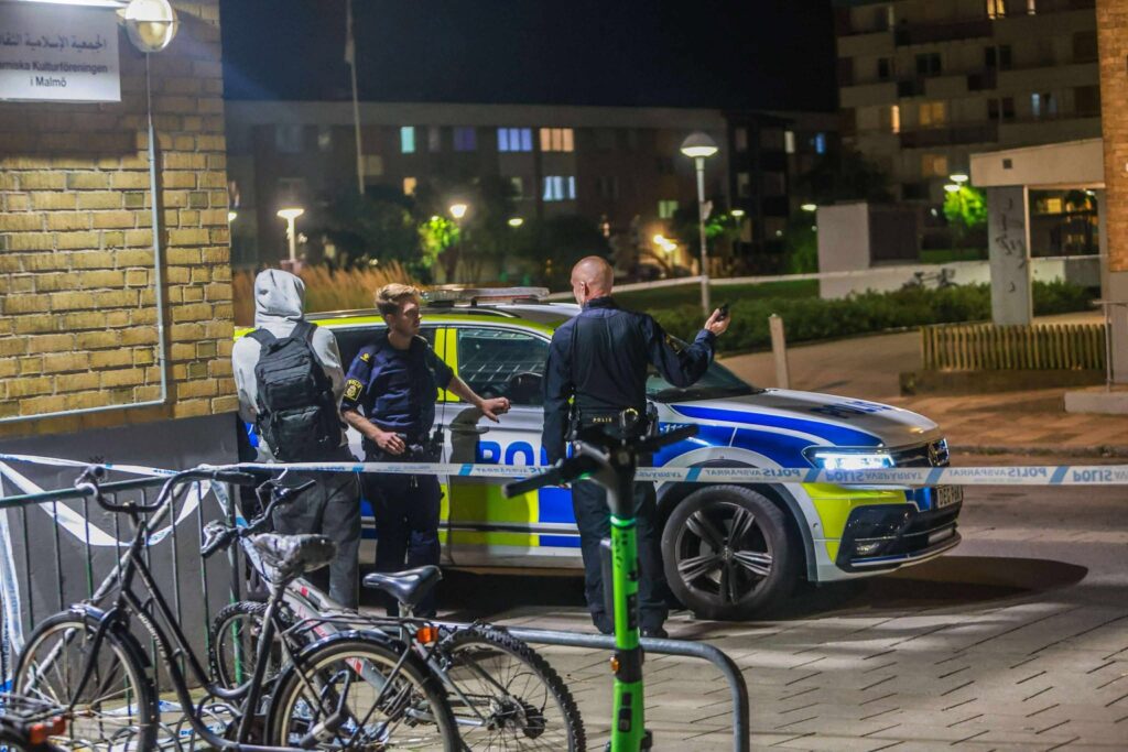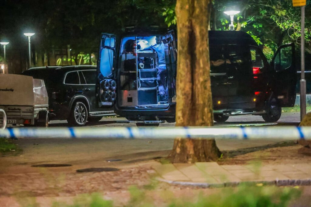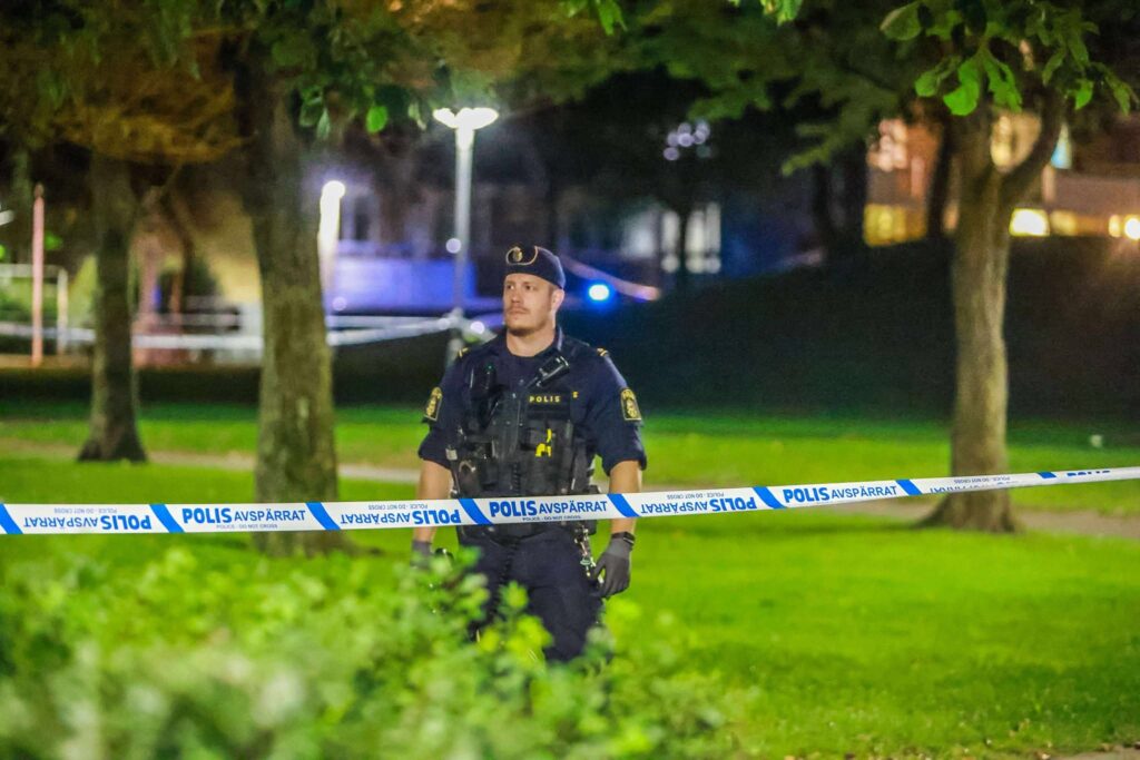 Billeder fra stedet viser, hvordan det svenske politi nu er i gang med at undersøge området, der er blevet spærret af.
