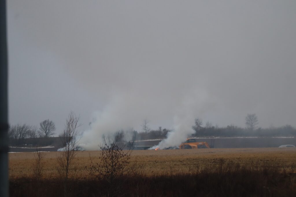 Billeder fra Presse-fotos.dks udsendte vise en enorm røgfane fra lastbilen.