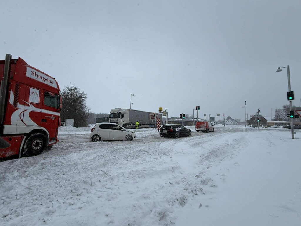 Uheldet er et af flere eksempler på, hvordan snevejret præger trafikken fredag. Det kraftige snefald kombineret med lave temperaturer giver risiko for både glatte veje og isslag, hvilket stiller store krav til bilister og særligt tunge køretøjer.