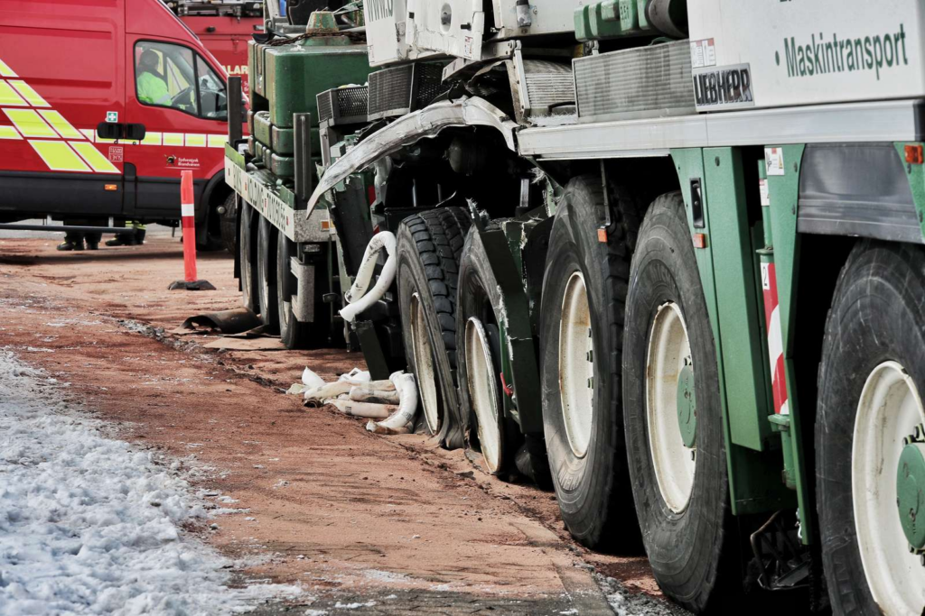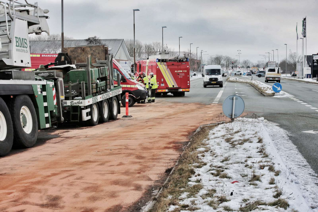 Kranlastbilen tilhører virksomheden BMS, og spildet har nødvendiggjort en omfattende oprydningsindsats.
