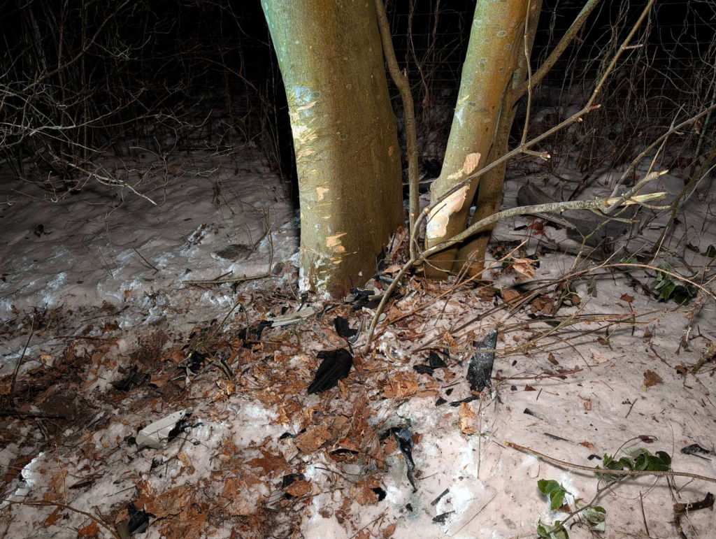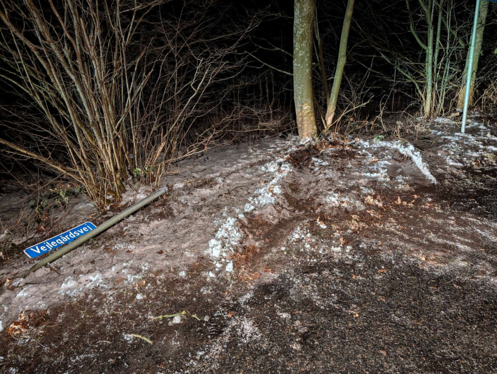 Billeder viser dog, at der er tydelige skader på træet, ligesom et vejskilt tilsyneladende også er blevet ramt.