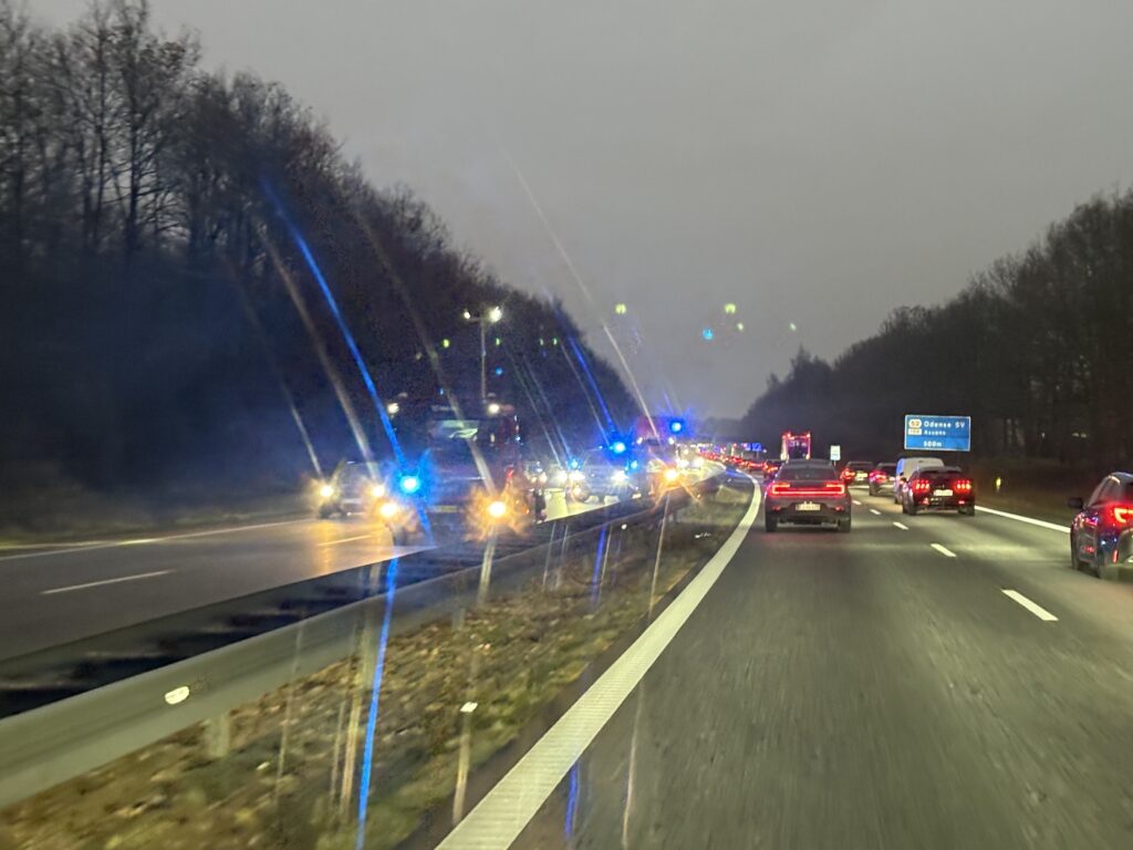 Det foregår på strækningen E20 fra Odense mod Middelfart mellem <51> Odense S og <53> Odense V, som lige nu er heftigt præget af uheldet fra morgenstunden.