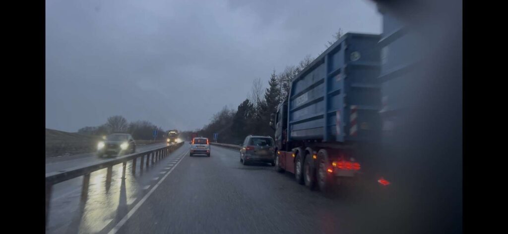 Der er umiddelbart ikke foretaget afspærringer af vejbanen, men trafikanter oplever allerede begyndende kø på strækningen.