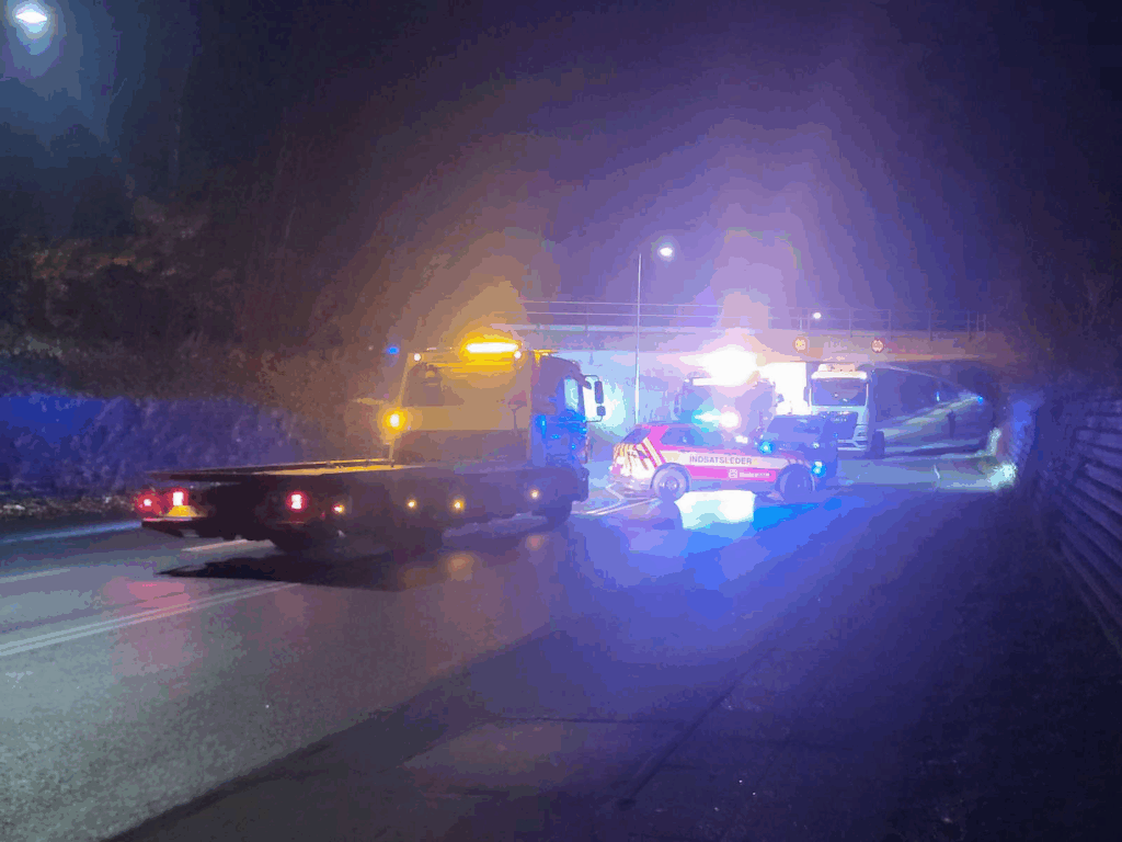Redningsmandskab og autohjælp arbejder intenst i området, hvor trafikken ikke kan passere, og hvor togpassagerer får beskeden om, at driften er indstillet indtil videre.