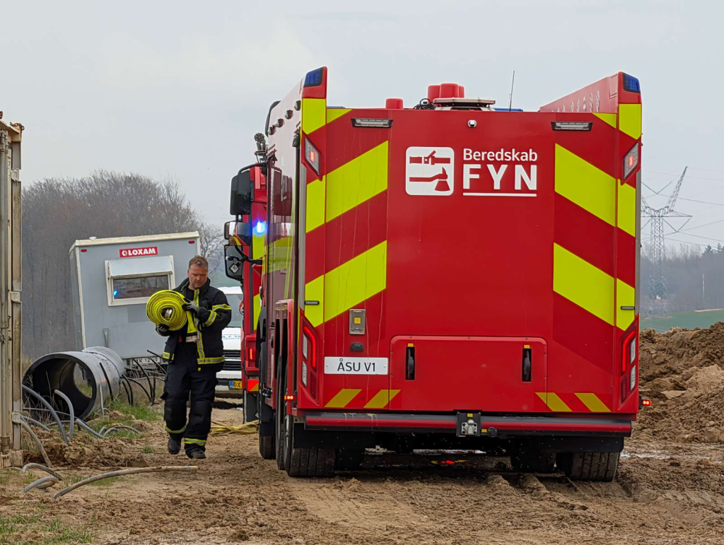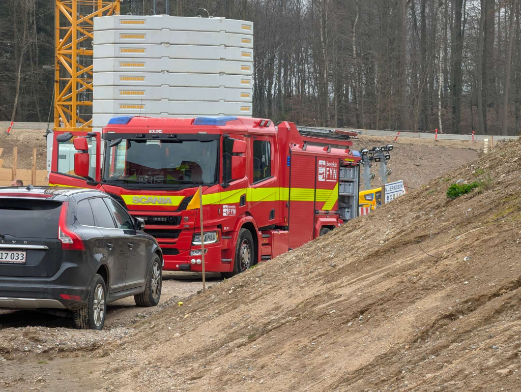 Onsdag middag er Beredskab Fyn til stede med flere brandbiler på en byggeplads på Spedsbjergvænget i fynske Blommenslyst.