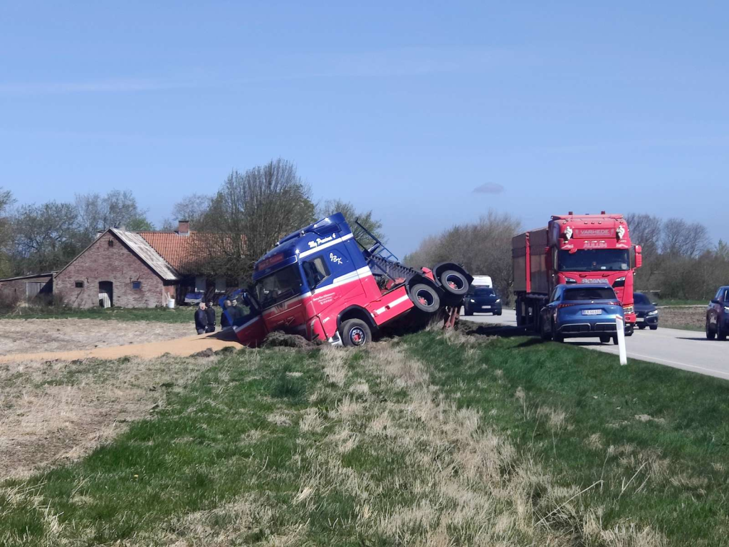 Defekten betød, at lastbilchaufføren måtte køre i grøften.