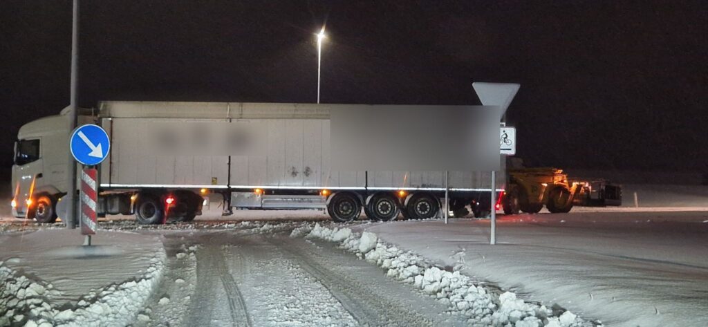 En lastbil har sat på tværs af en vej.