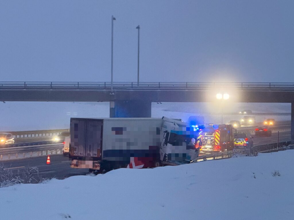 Tirsdag morgen er der opstået betydelige trafikale problemer på motorvejen, efter en lastbil er kørt galt i nordgående retning midt i morgentrafikken.