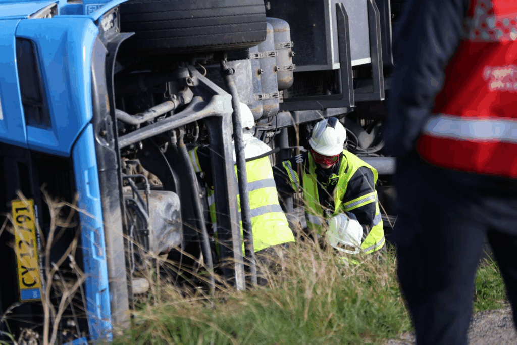 Fremme på stedet kunne redningsstyrker senere bekræfte, at en lastbil var kørt og vejen og styrtet ned i en grøft i et solouheld.