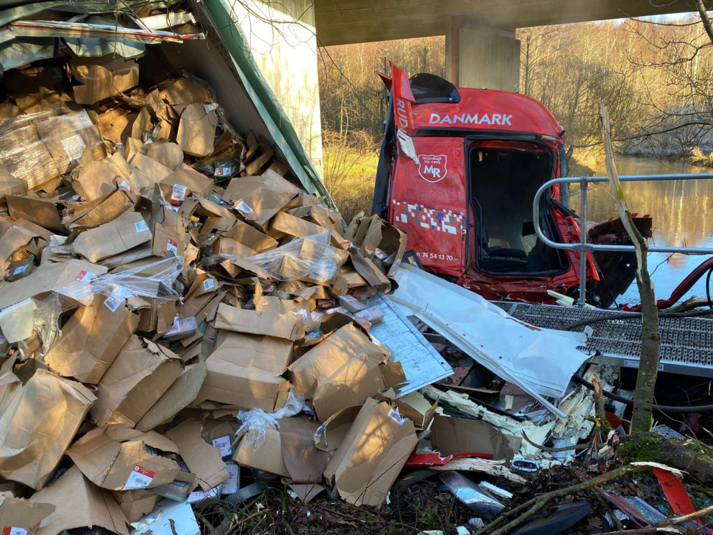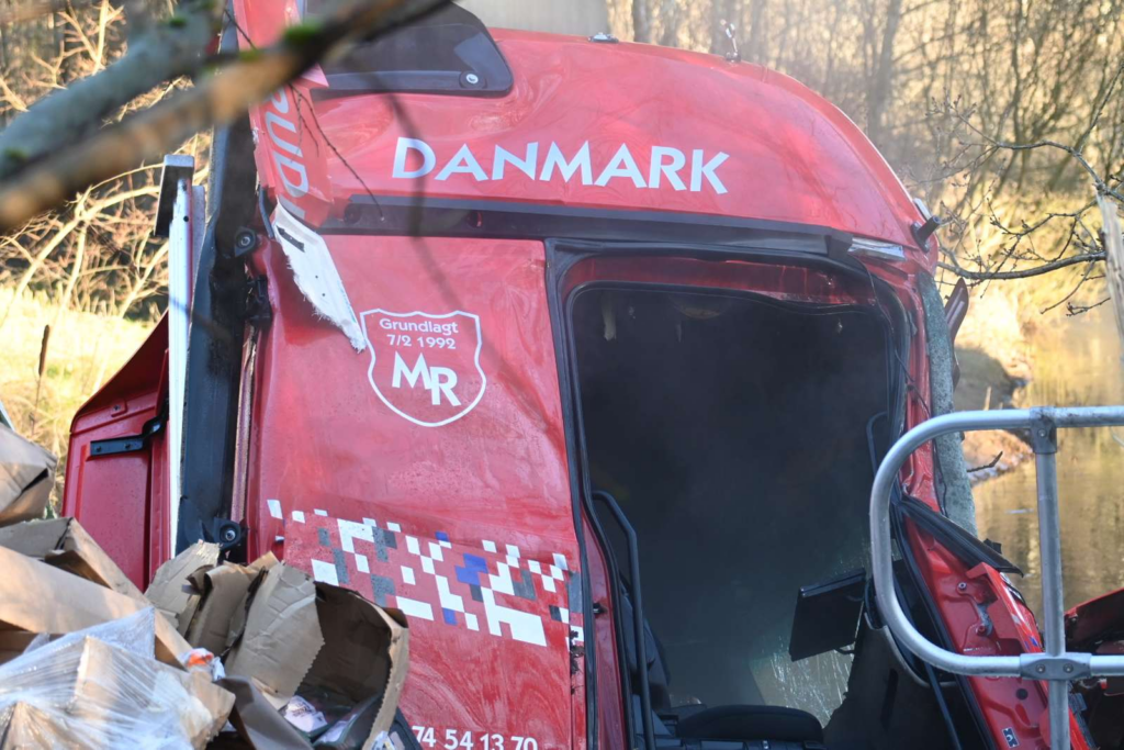 Lastbilen var lastet med kødvarer, og fokus er nu rettet mod konsekvenserne i området omkring åen.