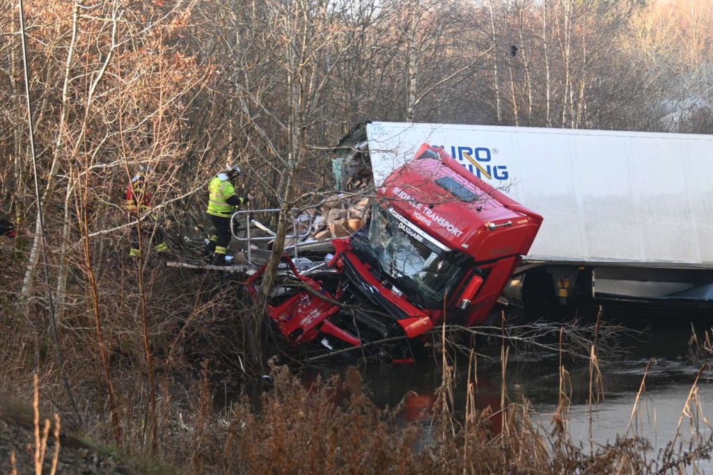 Ifølge politiet kørte lastbilen af endnu ukendte årsager gennem autoværnet netop dér, hvor motorvejen krydser åen. Køretøjet fortsatte ned fra motorvejen og endte i åen, hvor det kort efter brød i brand.