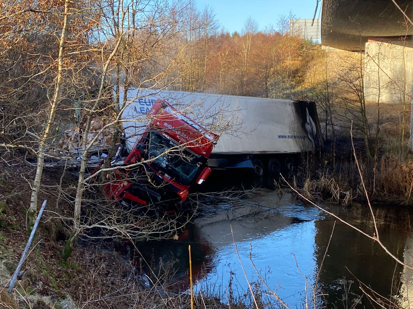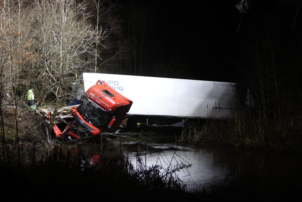Han beskriver det som et solouheld, men kan ikke sige noget om årsagen til uheldet. Ifølge TV Midtvest endte både lastbilens førerhus og sættevogn i Skjern Å, hvorefter lastbilen brød i brand. Lastbilen faldt 10-12 meter.